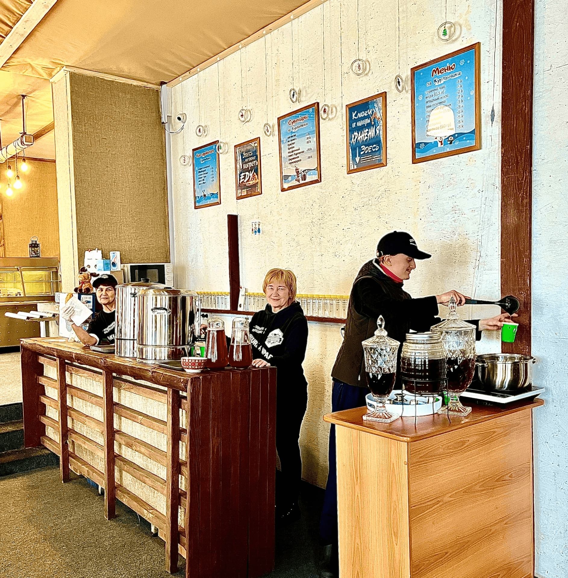 В этом сезоне мы не только обновили наше кафе, но и увеличили его в 4 раза!!!! Теперь места хватит всем!! Здесь вы можете вкусно перекусить или отметить свой праздник; посушить шапки / варежки, а так же потратить kурланчики на свежую выпечку и разные напитки для детей и взрослых. Организуем комплексное питание для школьных групп. И мы не возражаем, когда вы приносите с собой свои любимые салатики.